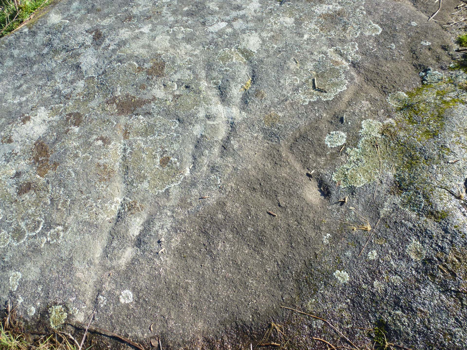 PEDRA 1: Rocha granítica de superficie irregular, situada nun plano inclinado (segue a pendente natural do terreo).