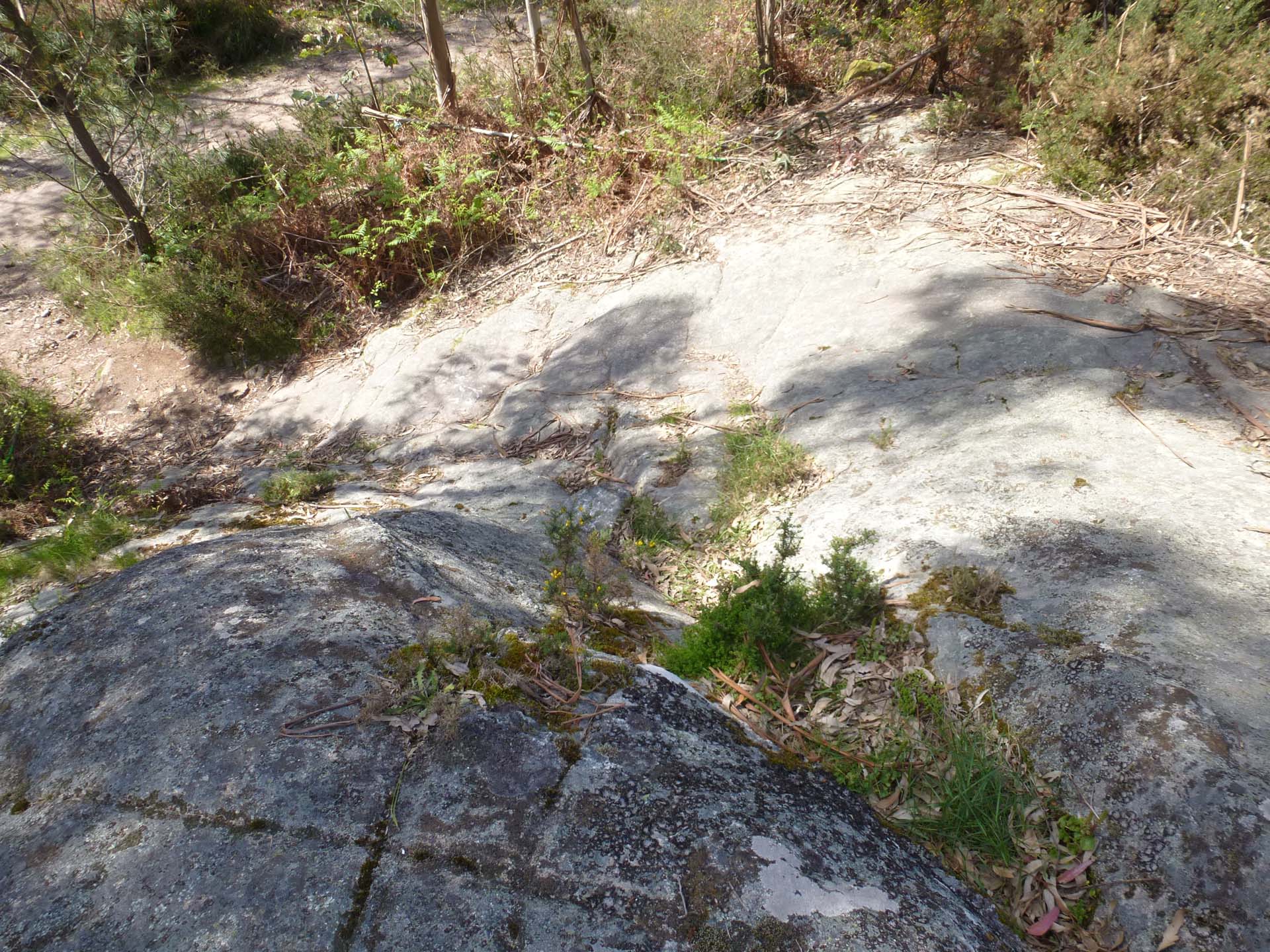 PEDRA 1: Rocha situada a ras de chan, en posición horizontal.