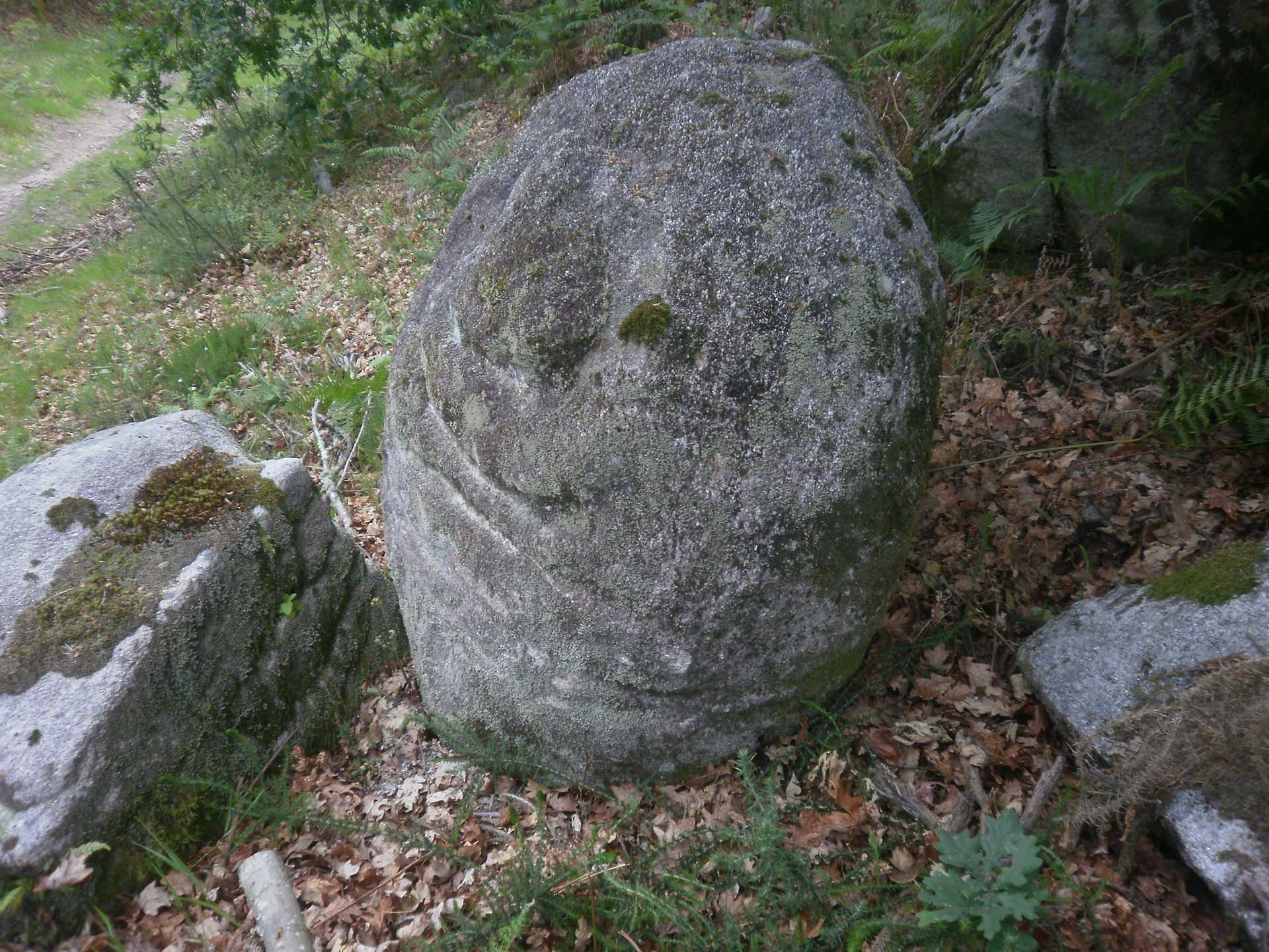 Trátase dunha rocha desprazada á parte superior do parapeto que circunda a zona N e NO do Castro. Un penedo caído das abas e desprazado logo cara este lugar, neste intre aparece semisoterrado no parapeto.